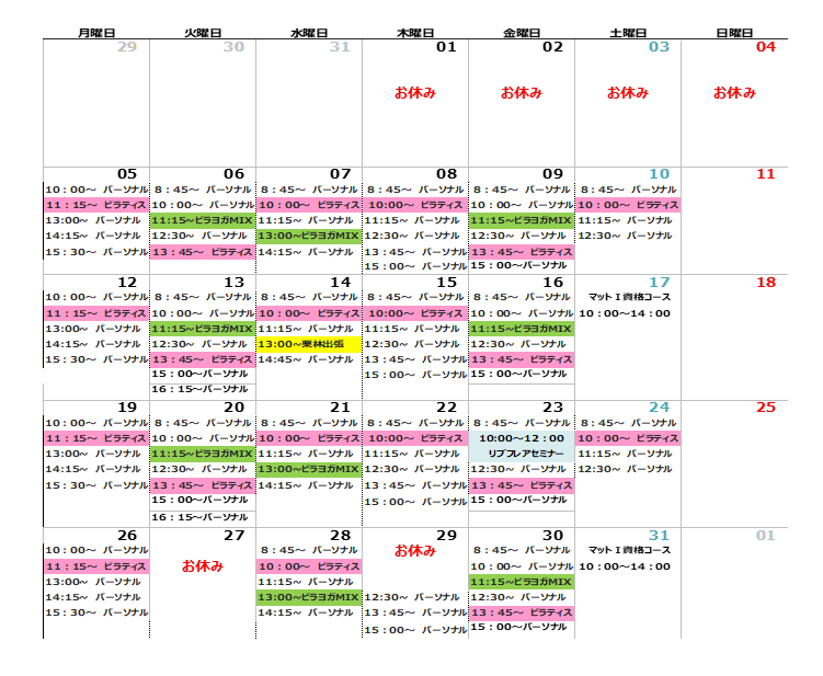 1月23日(金)リブフレアに対するピラティスセミナー (資格更新対象)