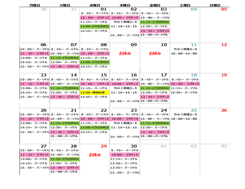 4月のピラティスレッスンスケジュールを公開しました✨